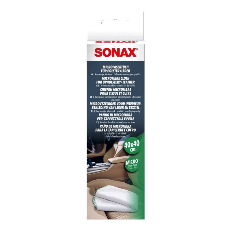 Висококачествен, пухкав микрофибър за почистване на тапицерия, текстил и кожени повърхности. Отстранява старателно мръсотията, без да оставя мъх. Перфектното допълнение към почистващите препарати SONAX за интериор, тапицерия и кожени повърхности: Абсорбира напълно останалата мръсотия и осигурява перфектна чистота. Може да се пере. Размери: 40 x 40 см.