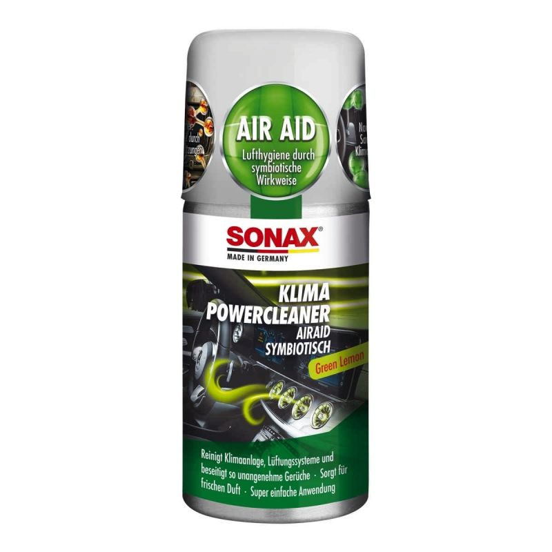 Климатикът в автомобила е идеалното място за размножаване на лоши миризми. SONAX Klima Power Cleaner почиства климатика, вентилационната система и изпарителя бързо и лесно, премахва неприятни миризми и осигурява свеж аромат в купето на автомобила. Лесен за употреба, без да се налага демонтаж на елементи: само след 10 минути и без усилие климатикът е почистен. Ефектът започва напълно след приблизително 14 дни. Две приложения годишно осигуряват постоянна защита.